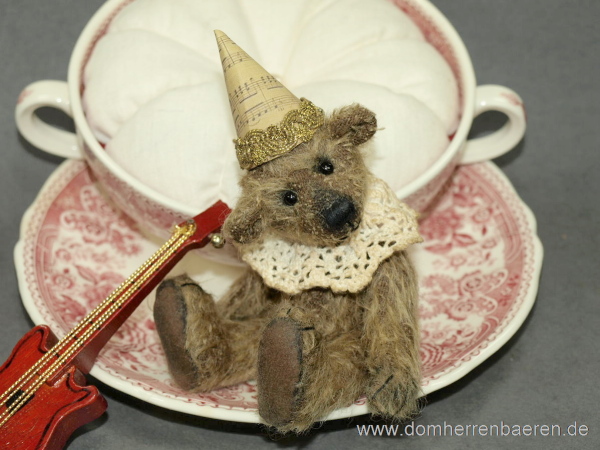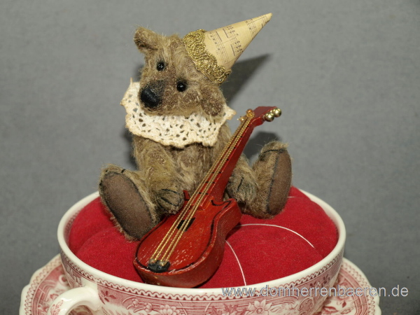 Ich will ein berühmter Musiker werden, habe es mir in der Suppentasse gemütlich gemacht, um in Ruhe zu üben.