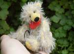 Bärenkind. Er begleitet Dich, an einem Lederband hängend,